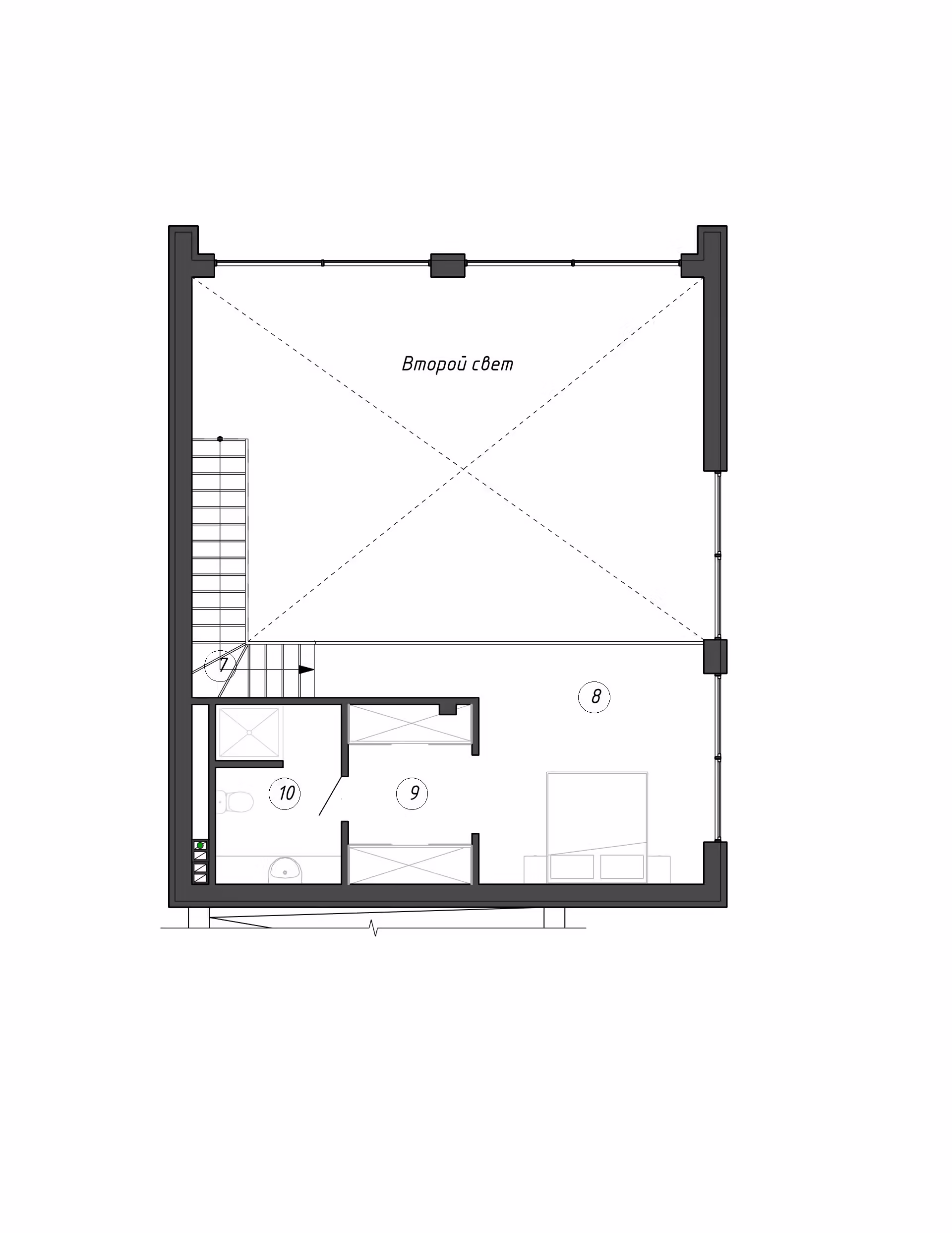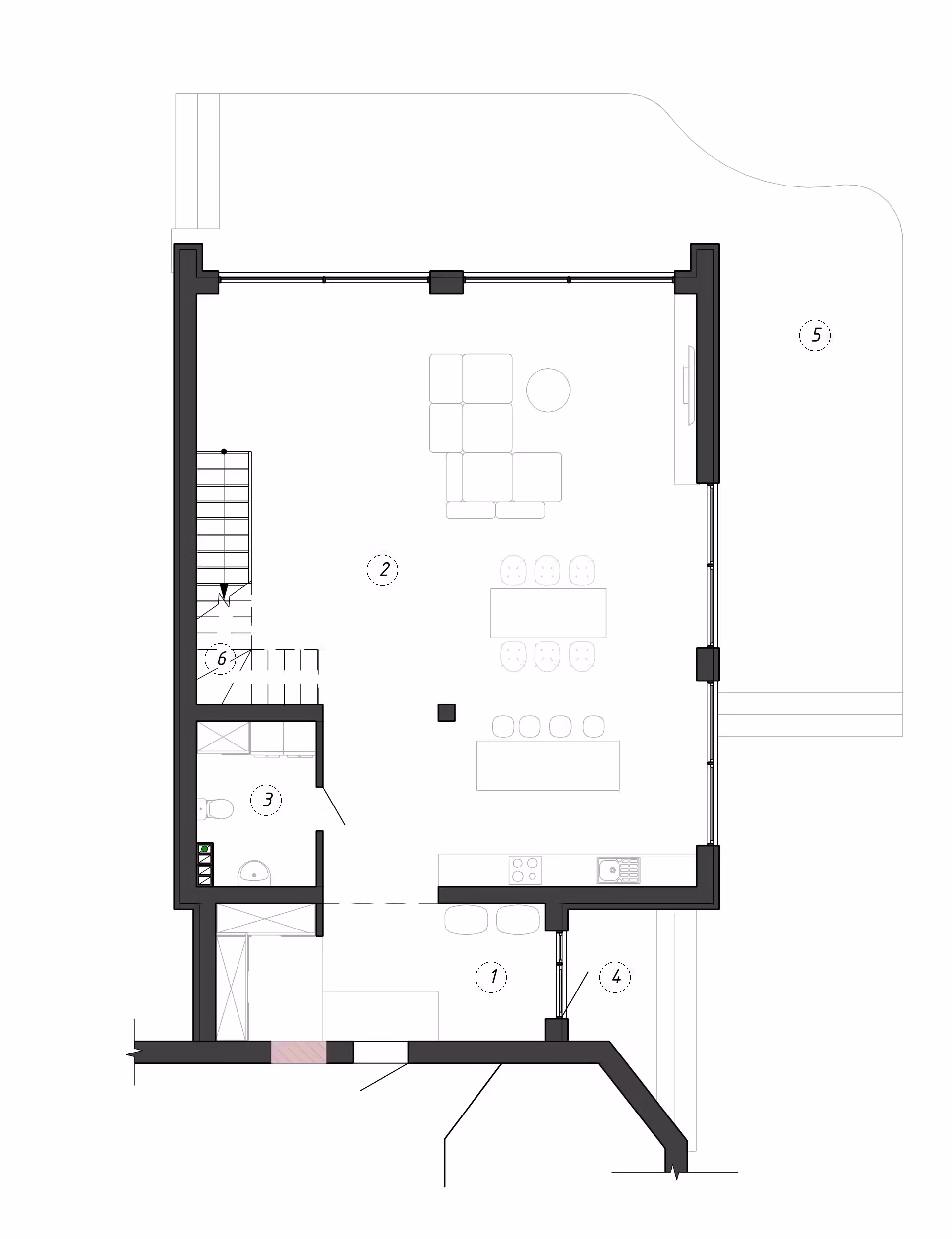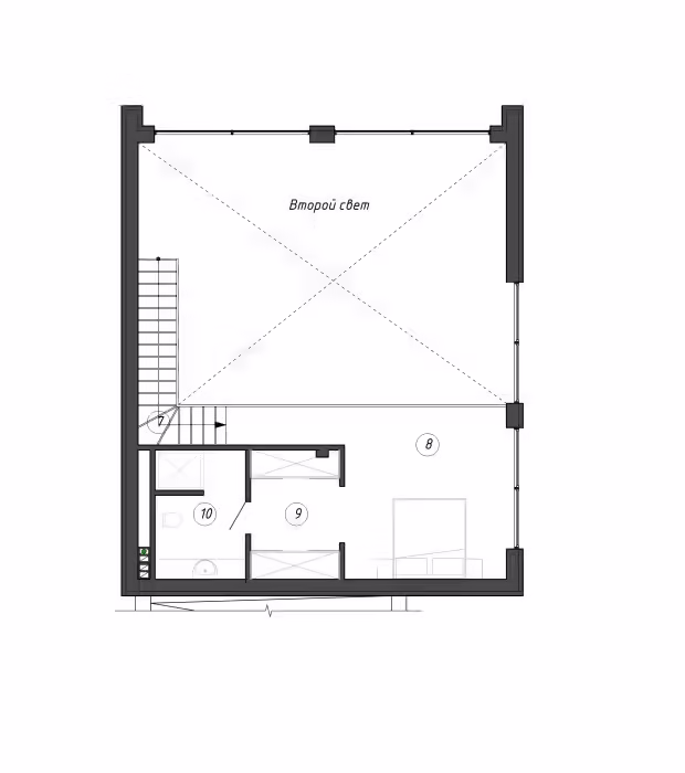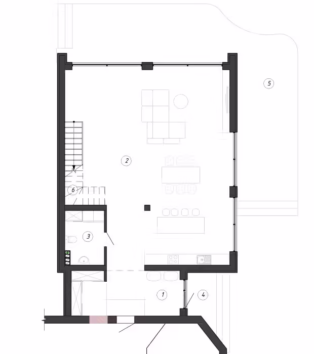Данный проект является пристраиваемой частью к реконструируемому дому, в котором останутся все технические помещения и зоны хранения.