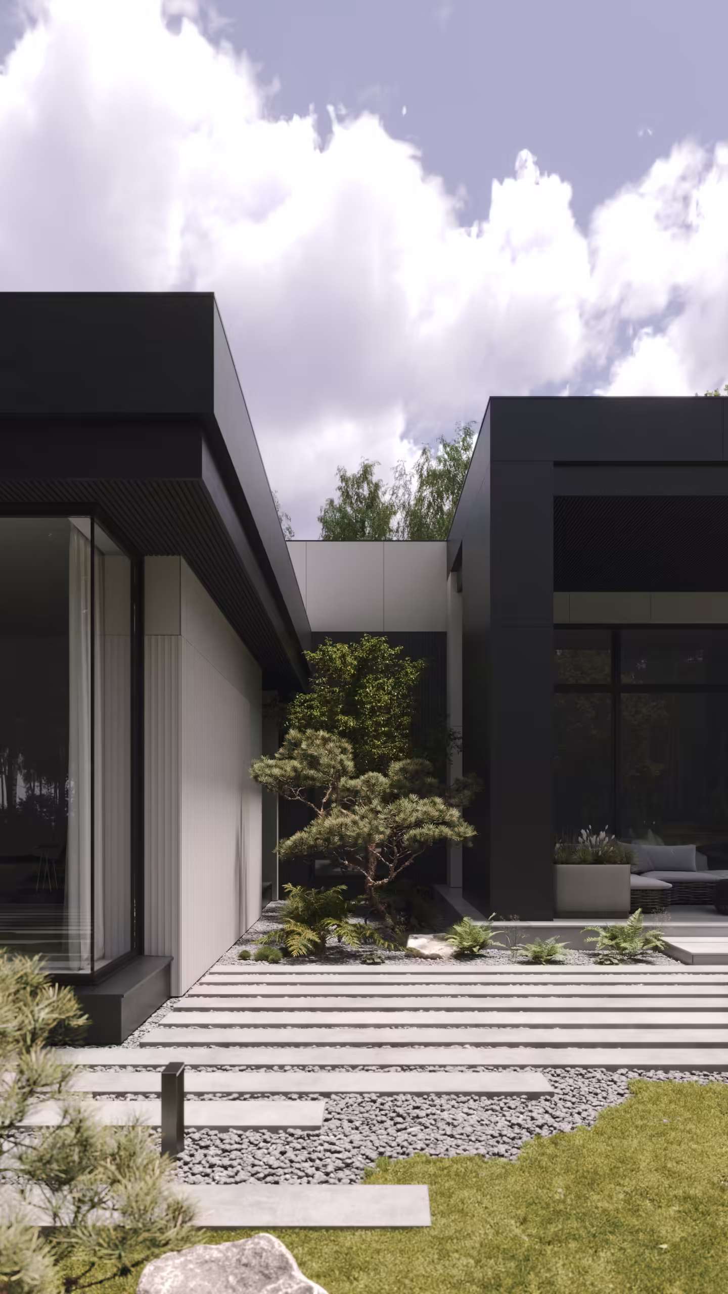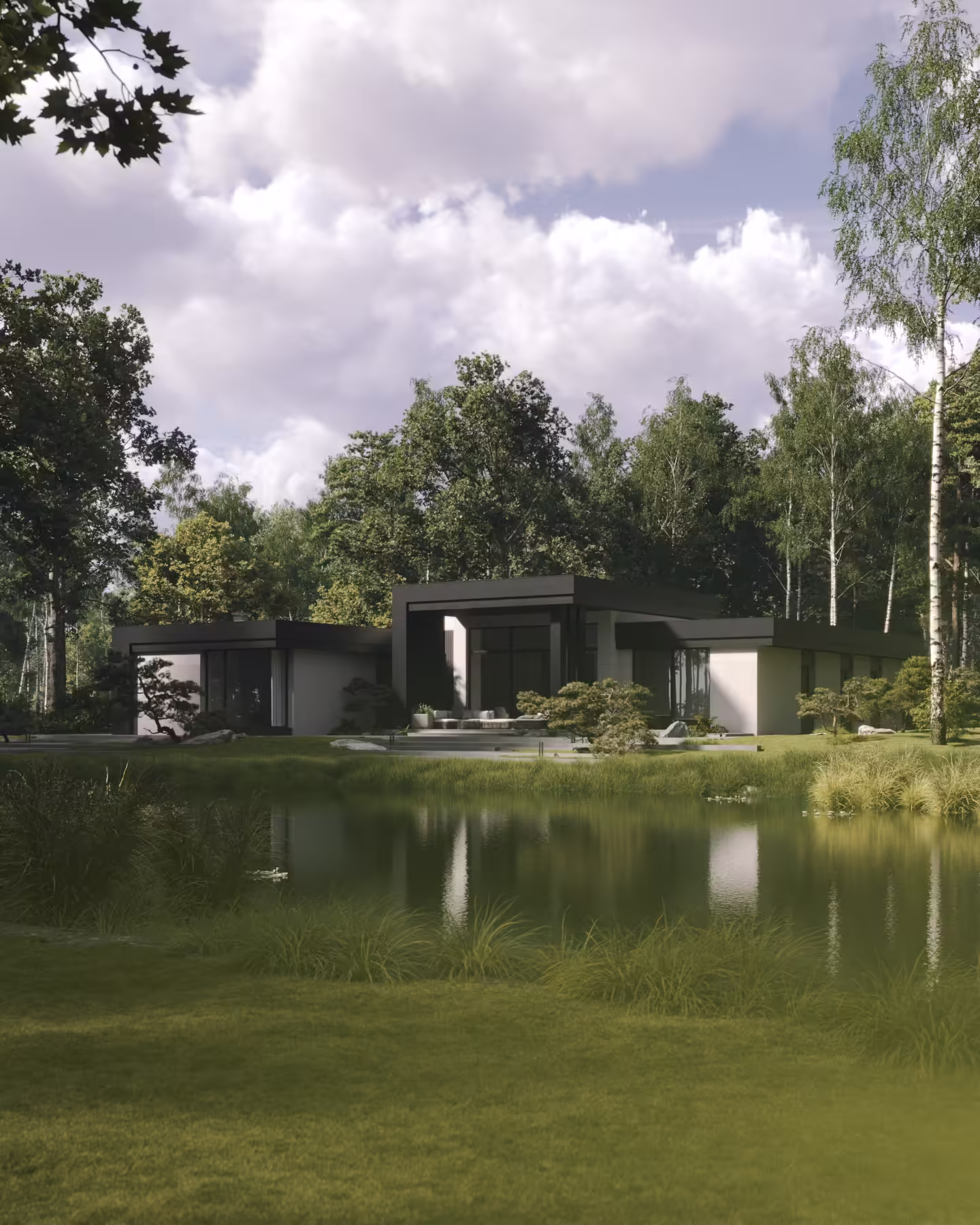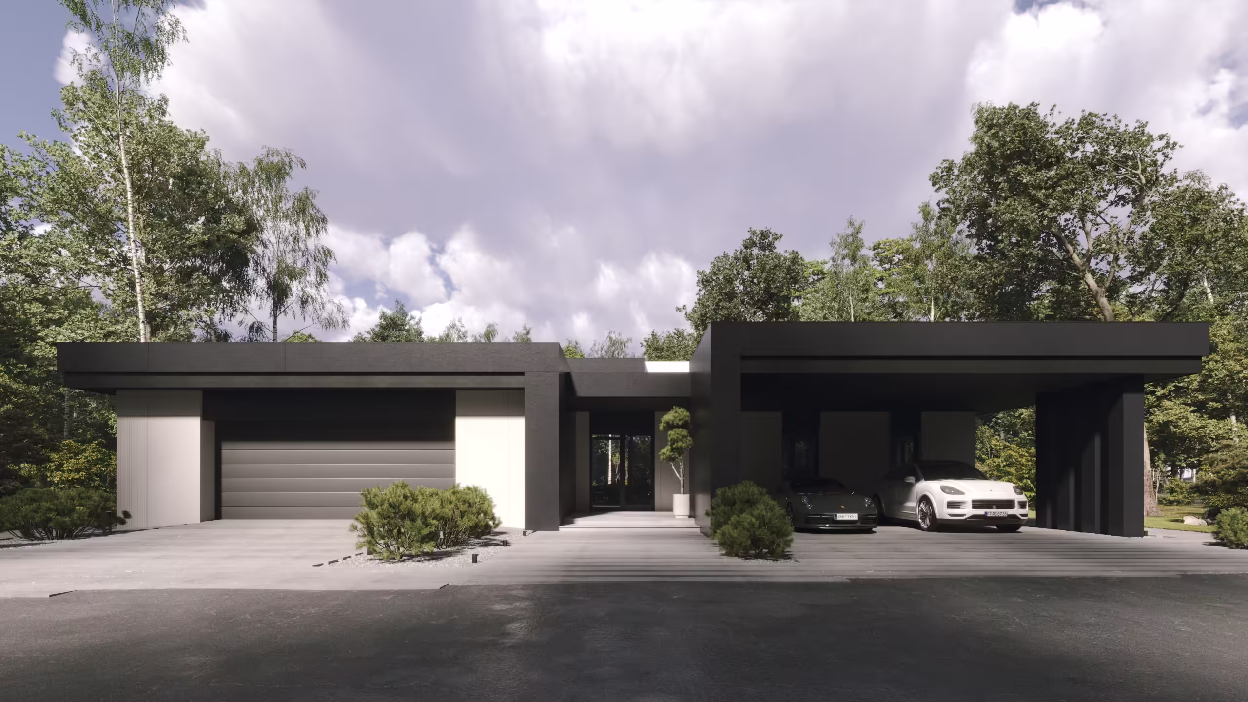 Просторный дом с интегрированным SPA-комплексом сочетает в себе строгость минимализма, скандинавскую функциональность и комфорт.