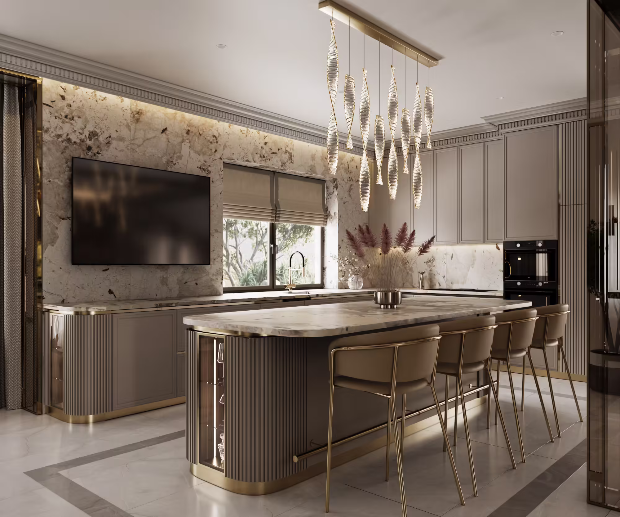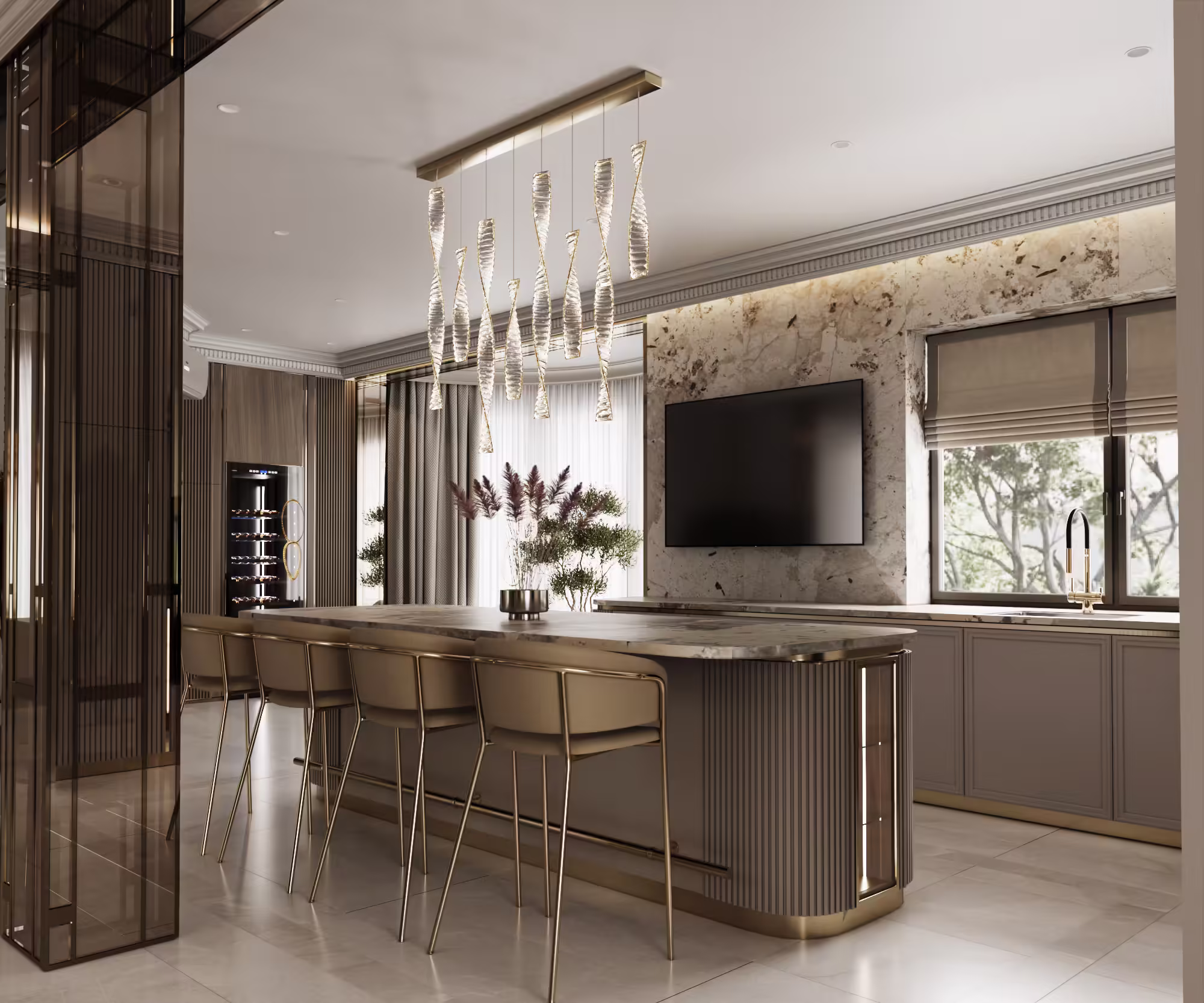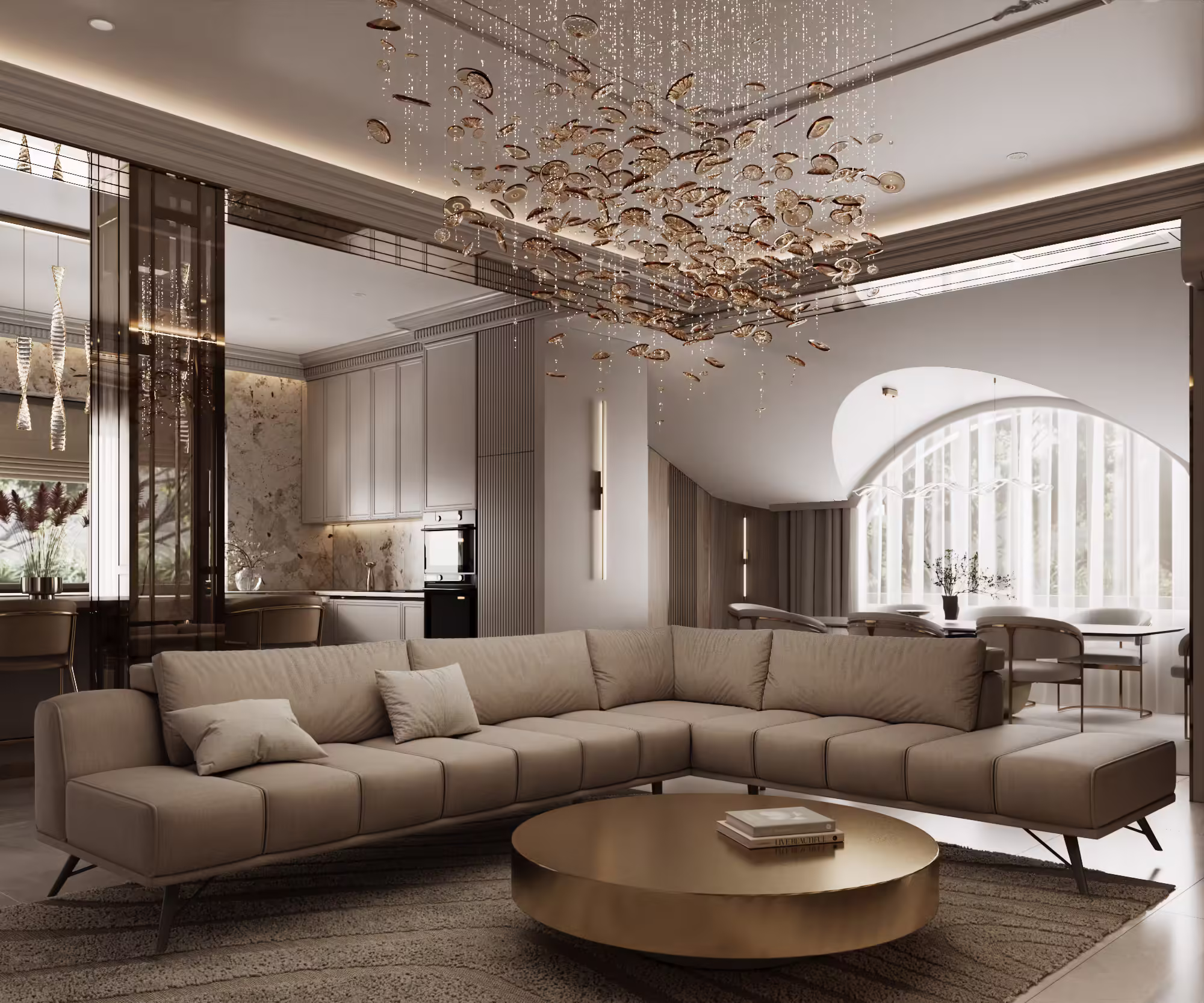 Золотые акценты на протяжении всего дизайн-проекта, передающие яркий характер хозяйки дома.
