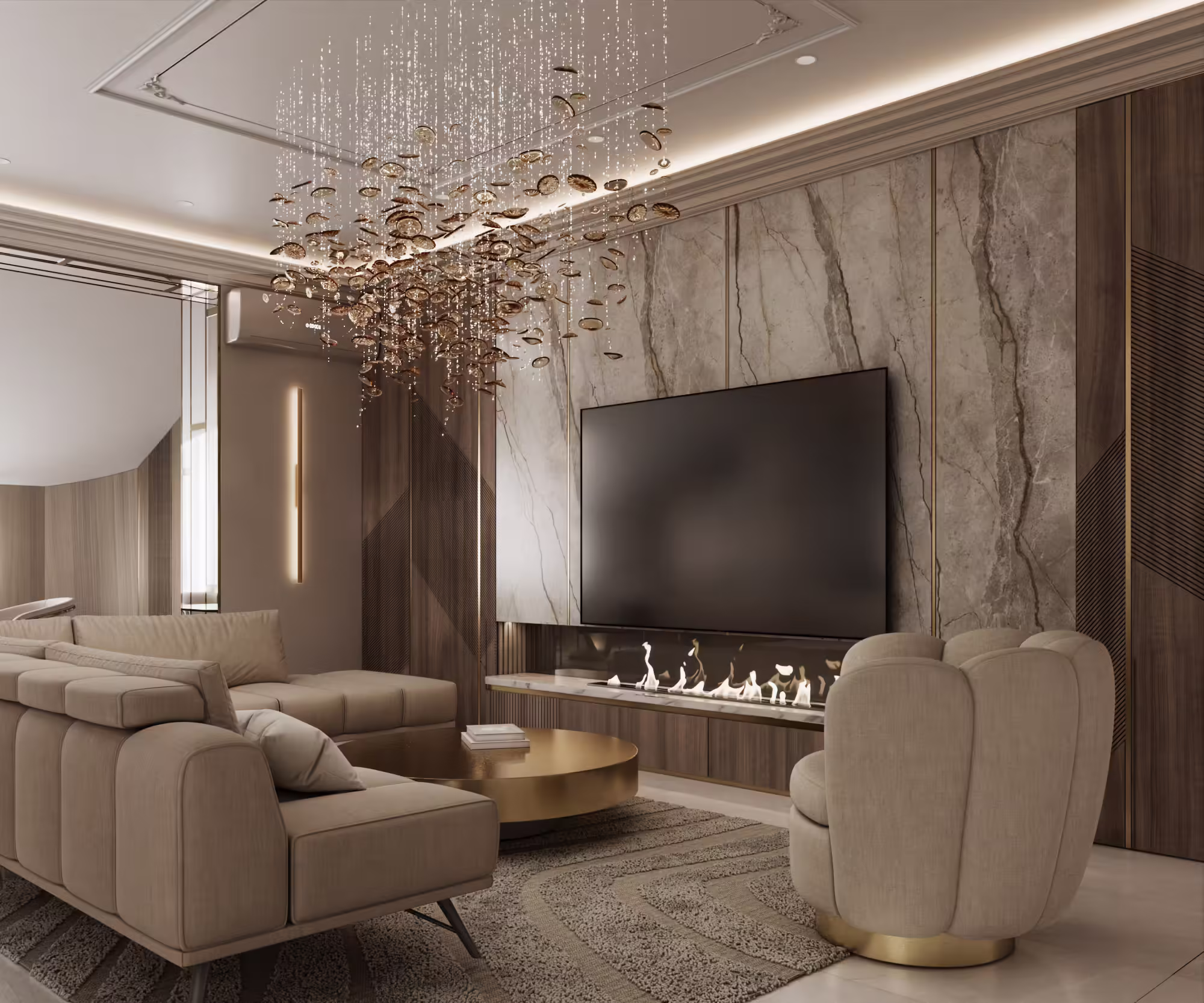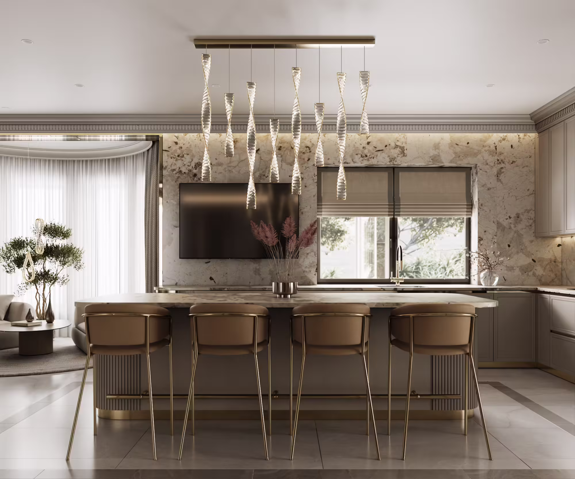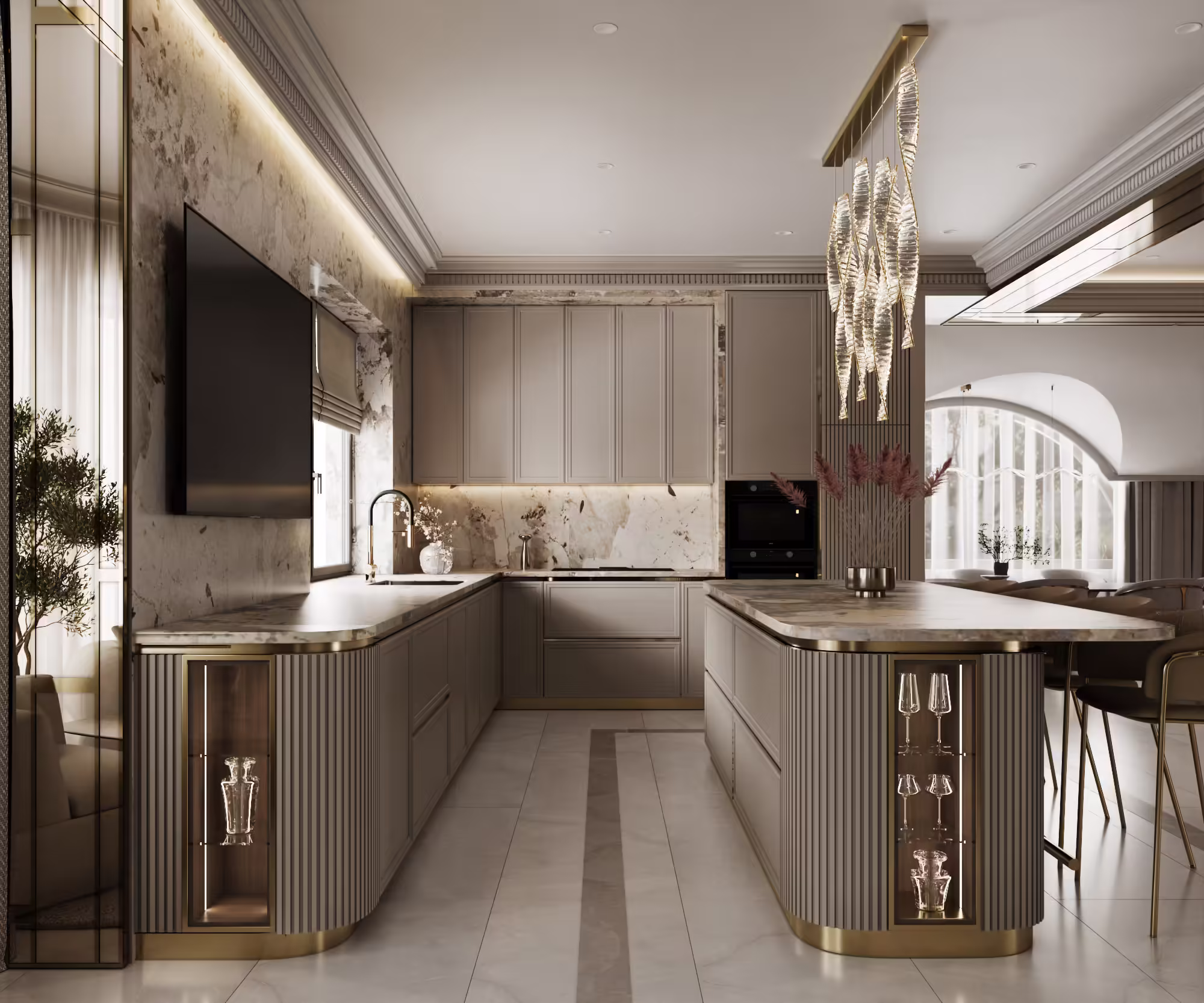 Золотые акценты на протяжении всего дизайн-проекта, передающие яркий характер хозяйки дома.